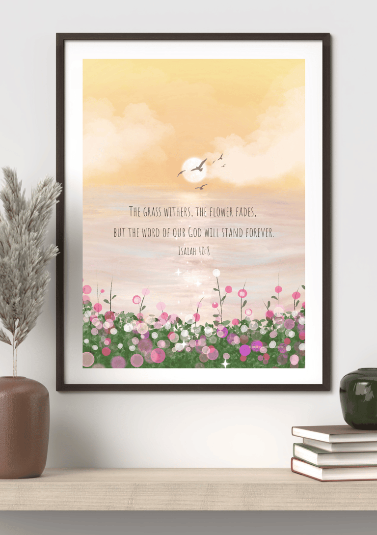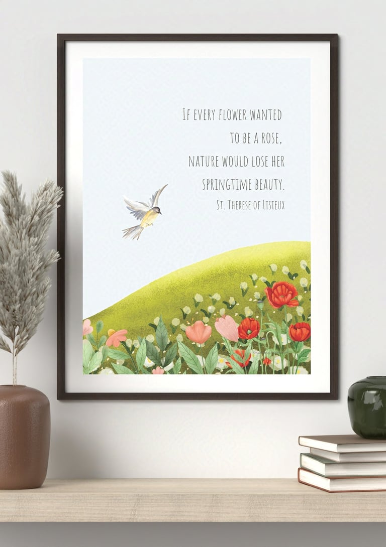 Welcome to our collection of faith-inspired printable art — lovingly created to uplift your space, nourish your spirit, and enrich your daily walk with God. From Bible verses and saint quotes to floral devotions and sacred designs, each printable is thoughtfully handcrafted to bring beauty, stillness, and meaning into your home, prayer corner, or journal.